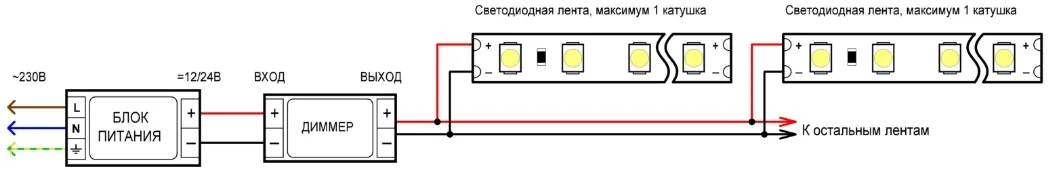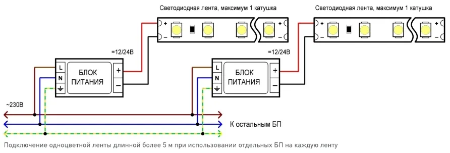 Схемы подключения светодиодной ленты