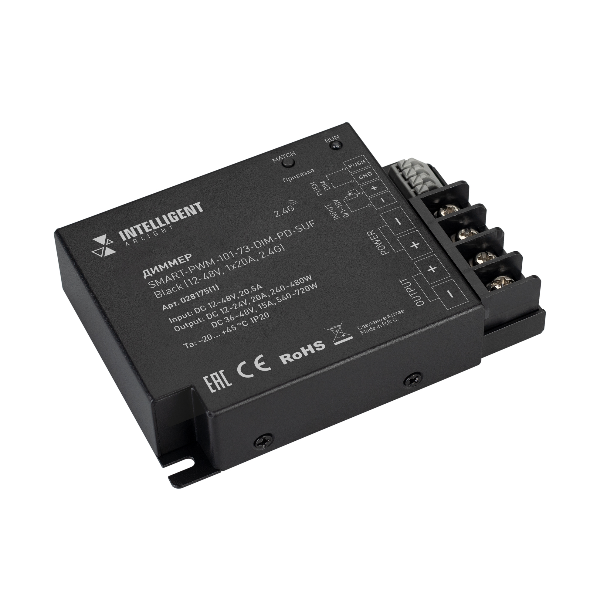 INTELLIGENT ARLIGHT Диммер SMART-PWM-101-73-DIM-PD-SUF Black (12-48V, 1x20A, 2.4G) (IARL, IP20 Металл, 5 лет) 028175(1) в Перми
