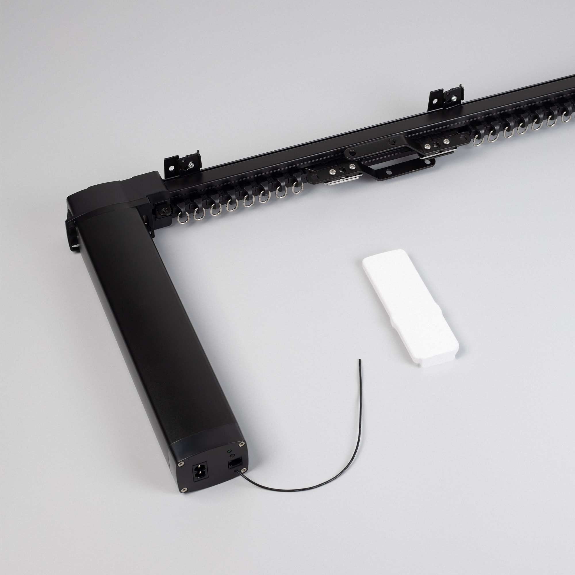 Полный комплект электрокарниза из металлического профиля с мотором. Готовое решение для установки карниза, который будет управляться дистанционно пультом, с помощью приложения на телефоне, голосовым помощником, внешним выключателем через "сухие" контакты, либо вручную. Возможность выбора нужной длины благодаря наборным частям.
