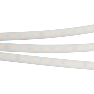 Герметичная светодиодная лента LUX шириной 13 мм в белой матовой силиконовой трубке с высокой степенью пылевлагозащиты IP66. Светодиоды SMD 5060 (60 шт/м) с теплым белым цветом свечения (2700 К), индекс цветопередачи CRI>85. Мощность 14.4 Вт/м, напряжение питания 24 В. Минимальный отрезок 100 мм (6 светодиодов). Освещение интерьеров и создание декоративной подсветки, оформление наружной рекламы и витрин. Возможно использование во влажных помещениях и на улице.