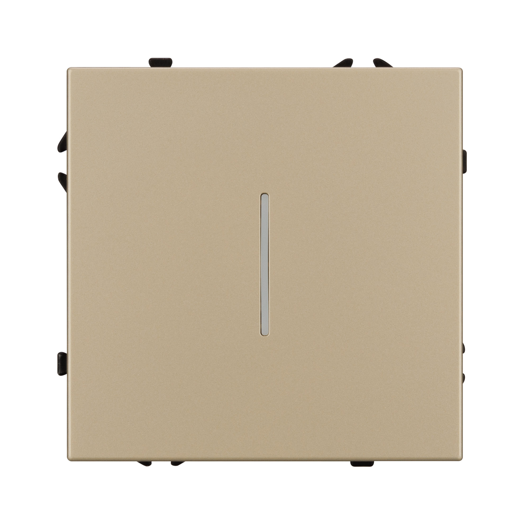 Строгие геометрические линии гармонично сочетаются с функциональностью продуманных механизмов, создавая идеальное решение для дизайн-проектов, где важны как эстетика, так и практичность. Механизм выключателя света совместим с рамками серии NOBE, создает утонченный минималистичный вид. Скрытый тип монтажа позволяет гармонично встроить в интерьер любого современного дизайн-проекта. Видимая часть механизма выполнена из высококачественного пластика золотого цвета и имеет Soft-Touch покрытие, что придает изделию приятные тактильные ощущения и стильный внешний вид. Соединение посредством быстрозажимных контактов, позволяет надежно подсоединить механизм выключателя к питающим элементам, минимизируя затраченное время на монтаж. А усиленные распорные лапки двойного захвата надежно фиксируют механизм в установочном подрозетнике круглого сечения диаметром 60мм. Суппорт окрашен в черный матовый цвет под основу механизма и выполнен из металла толщиной 1,5мм, что обеспечивает безопасность и уверенность в установке. На каждой стороне суппорта размещены фиксирующие элементы, позволяющие комбинировать механизмы в системы до 5 шт как горизонтально, так и вертикально. Выключатель оснащен клавишами с активной подсветкой, синего цвета свечения.