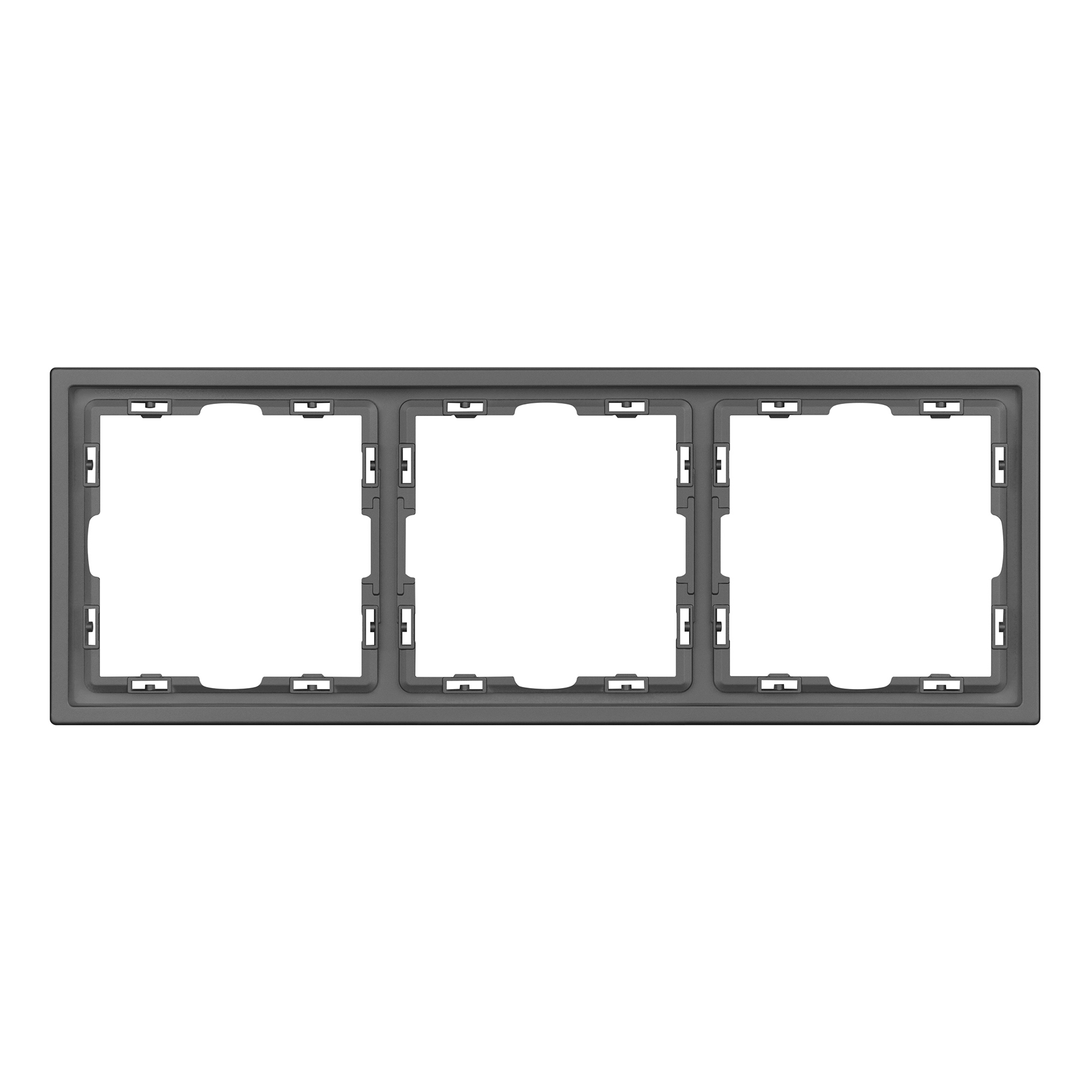 Рамка пластиковая на 3 поста, под встраиваемый механизм. Цвет - серый, с Soft-Touch покрытием. Среднего уровня герметичности IP20. Ориентация монтажа горизонтальная.