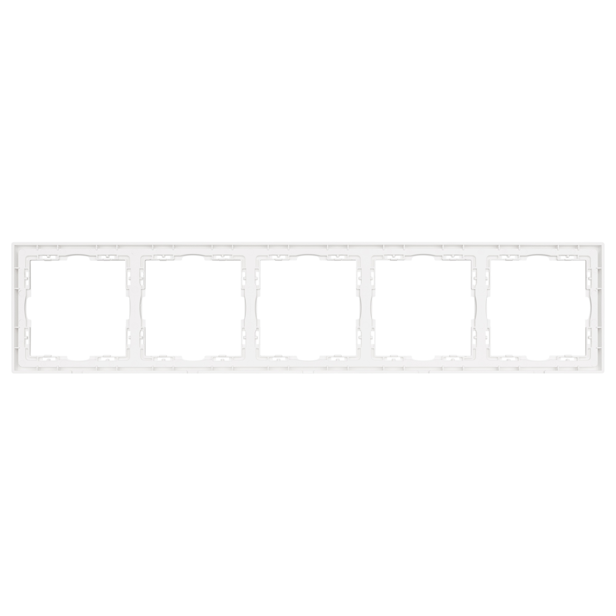 Рамка пластиковая на 5 постов, под встраиваемый механизм. Цвет - белый, с Soft-Touch покрытием. Среднего уровня герметичности IP20. Ориентация монтажа горизонтальная.