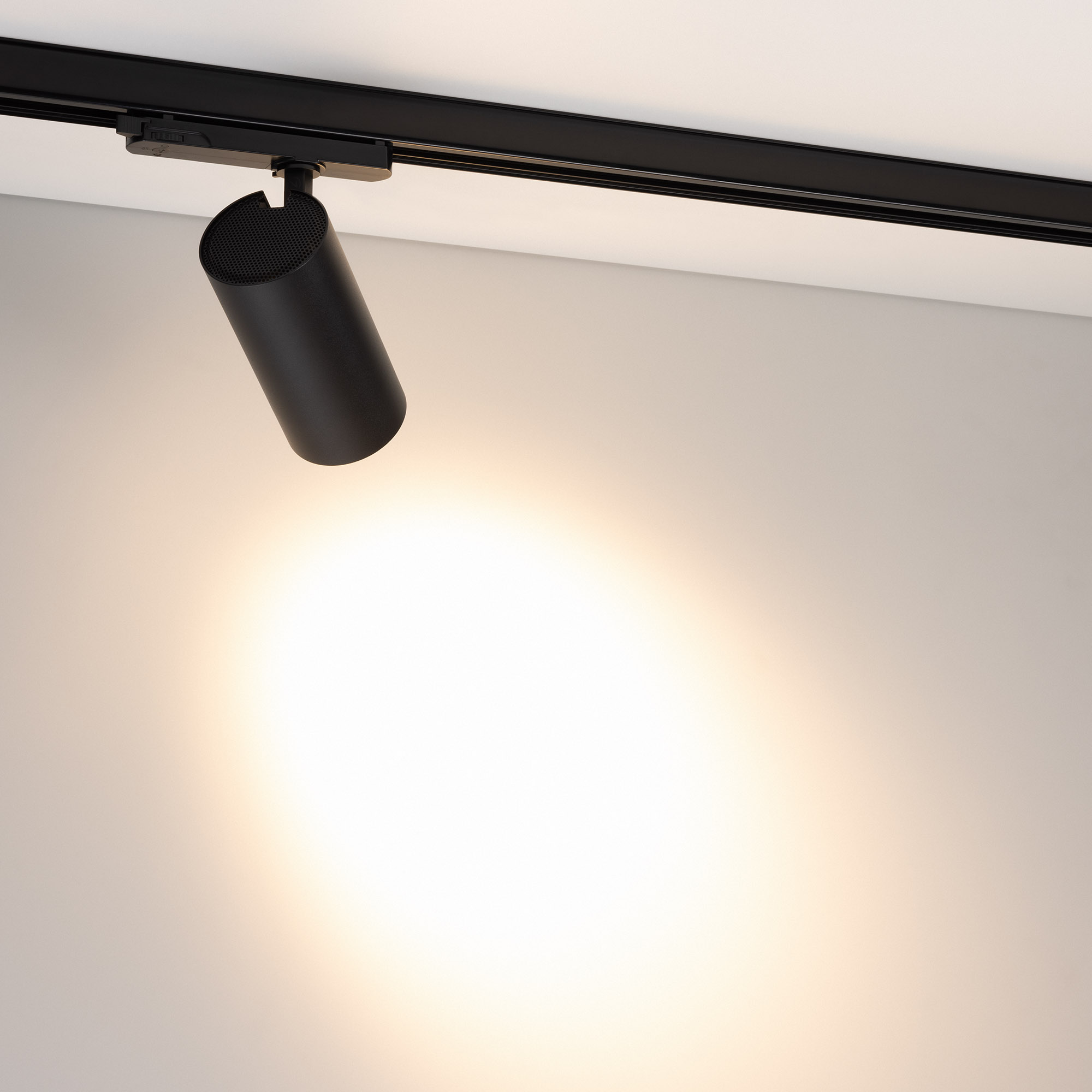 Светильник для треков/шин 4 провода. Мощность 20 Вт, св. поток без решетки honeycomb 2000 лм, 100 лм/Вт, с решеткой honeycomb 1320 лм, 66 лм/Вт, теплый 3000 K, CRI>90, угол 36°, напряжение питания 230 В. Черный круглый корпус из алюминия, материал линзы PMMA, степень защиты IP20. Размер: диаметр 74 мм, длина световой части 154 мм. Монтаж на трек 3-фазный. Драйвер встроенный 24-42 В, 500мА., пульсация <5%