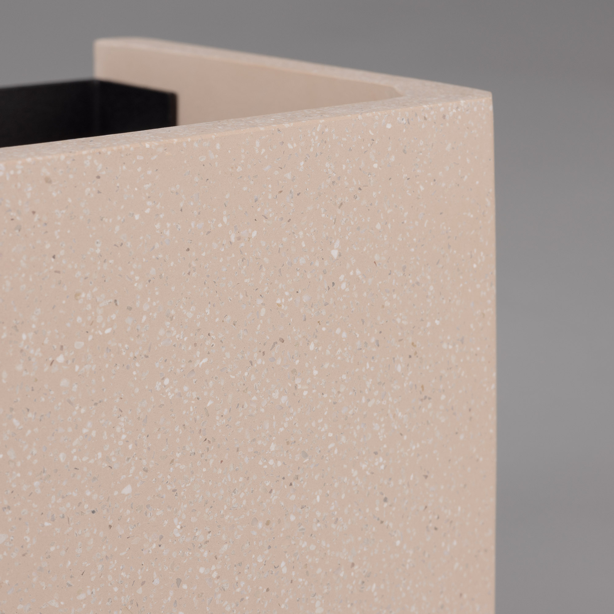 Накладной настенный светильник, свечение вверх/вниз. Мощность 6 Вт, св. поток 286 лм, 49 лм/Вт, теплый 3000 K, CRI>90, изменяемый угол освещения 0°-80°, напряжение питания 230 В. Фигурный корпус из бетона цвета светлой слоновой кости и алюминия, экран ударопрочный PC, степень защиты IP65. Размер: длина 120 мм, ширина 120 мм, высота 120 мм. Монтаж накладной. Драйвер встроенный, пульсация <0.5%.