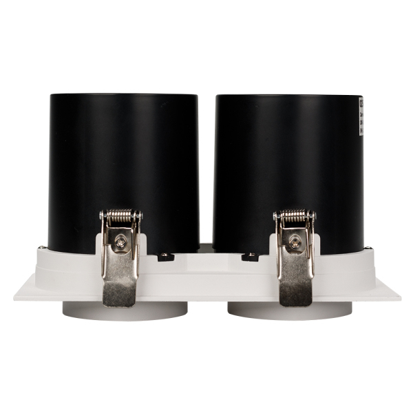 Встраиваемый поворотный выдвигающийся светильник для потолка. Светодиоды 2x10W, цвет БЕЛЫЙ 6000K, св.поток 1900лм, угол 20°, RA>90. Корпус белый. Мощность 20Вт, питание AC220-240V. Размеры WxLxH 100x185x110мм. Установка в отверстие 90x175мм. Драйвера в комплекте (2 шт 27-38V 260mA).