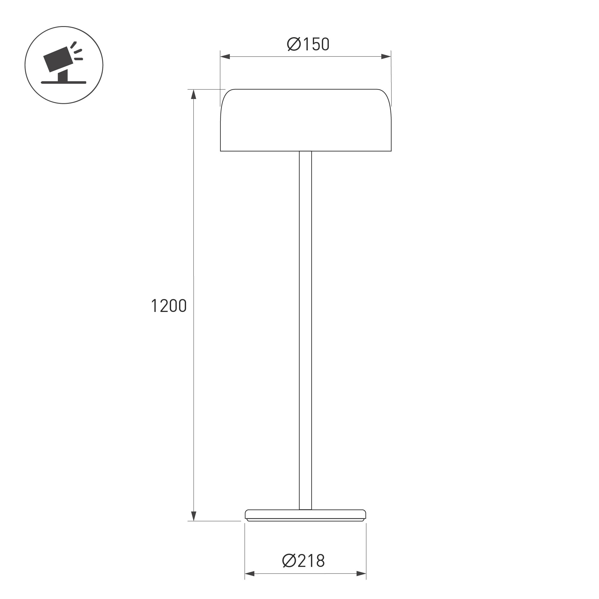 Напольный светильник со встроенным аккумулятором мощностью 4.7Вт, черный металлический корпус. Цвет теплый белый 2700К, св.поток 114 лм, CRI(Ra)>85, угол 130°. Размер ø150x1200мм, диаметр основания Ø218. IP54. Тип встроенного аккумулятора 2000мАч, напряжение батареи DC3.7V. Солнечная батарея 0,9 Вт