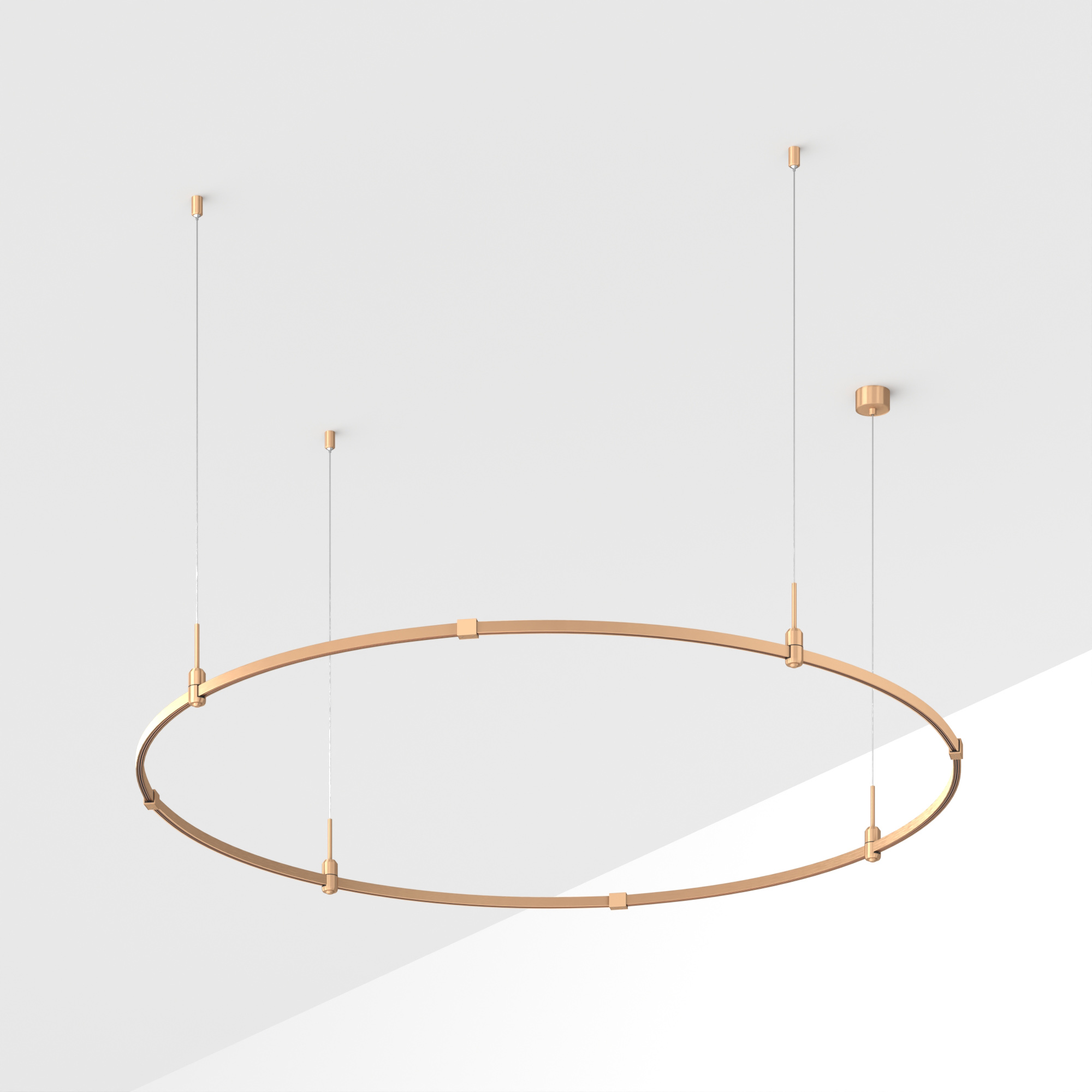 Подвесная конструкция APRIORI, форма круг. В комплекте треки с аксессуарами и гибкими подвесами. DC48V. Материал алюминий, цвет светлое золото. Размер: диаметр 1800мм, высота 22мм. Светильники и источники питания приобретаются отдельно.